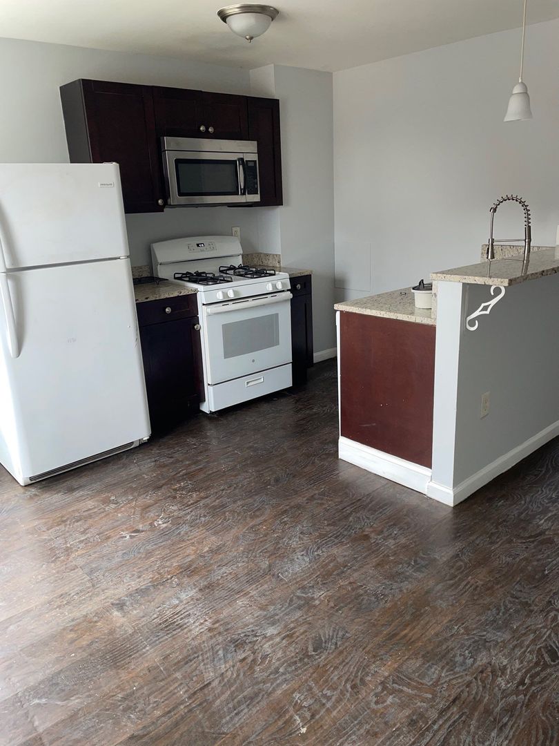 Located in Baltimore, this beautifully remodeled second-floor apartment offers two bedrooms and one bathroom with hardwood flooring throughout.